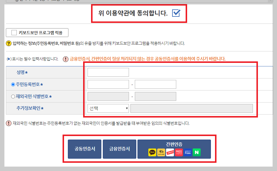 3. 본인 인증을 위해 공인인증서 또는 휴대폰 인증을 진행합니다