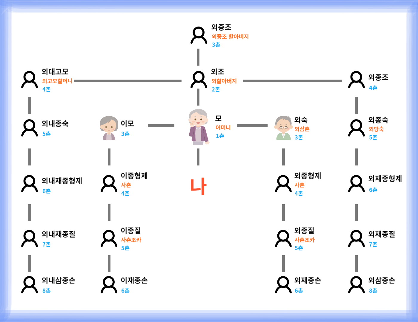 ◆ 외종 할아버지/할머니(외종조/외대고모) : 외할아버지의 남자 형제, 여자 형제